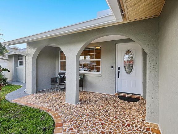 Welcome to your slice of paradise in the GOLF-CART friendly, WATERFRONT COMMUNITY of Gulf Harbors! This beautifully renovated 3-bedroom, 2-bathroom home offers 1,454 square feet of comfortable living. When you arrive, you’ll notice the lush tropical landscaping, archway details & gorgeous mosaic tile patio. Step inside and you’ll find a bright and airy OPEN LAYOUT with VAULTED CEILINGS, recessed lighting, NEW FLOORING, fresh paint, and stylish updates throughout. The kitchen is a standout with GORGEOUS QUARTZ COUNTERTOPS, stainless steel appliances and plenty of cabinetry and countertop space, perfect for entertaining or a quiet night in. The spacious primary bedroom abounds in natural light, and the additional two bedrooms are perfect for guests or a home office. All bedrooms are outfitted with Levolor light blocking window shades. Both bathrooms have been tastefully redone with MODERN FIXTURES and TIMELESS TILEWORK. Out back, enjoy your fully fenced, lush yard with paver patio and NO REAR NEIGHBORS. All major systems have been recently updated giving you peace of mind: NEW ROOF (2023), NEW HVAC (2023), NEW ELECTRICAL PANEL (2023), NEW WATER HEATER (2023). The Gulf Harbors Civic Association hosts neighborhood events throughout the year - joining is optional at just $125/yr which also gives you access to a community BOAT RAMP to enjoy the Gulf waters. You can also join the Gulf Harbors Beach Club for just $200/year for your very own PRIVATE BEACH – a rare perk that gives you a spot to relax by the water, grill your fresh catch of the day and watch the sunset. This is more than just a home, it's the COASTAL LIFESTYLE you've always wanted.