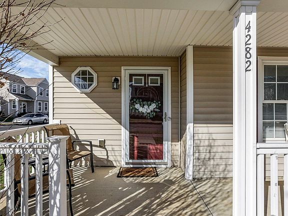 The charming community of Village at Pine Grove is ready to welcome you! This low-maintenance, corner lot, two-story home makes great use of space with a large living room with fireplace, ample dining area, and a roomy kitchen with walk-in pantry. Upstairs you'll retreat to your owner's suite, and you will find two additional bedrooms, another full bath, and second floor laundry area. New vinyl plank flooring, fresh neutral paint, and new water heater (2022) allow you to move right in! A low monthly HOA covers lawn mowing, street snow clearing, and maintains park and peaceful pond. Check this one out!