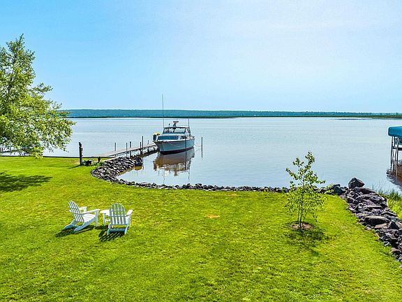 Incredible Portage Lake/Chassell Bay home is now available!! The owner has clearly taken great pride in carefully maintaining and tastefully upgrading the home. This is especially evident in the completely custom kitchen remodel which includes soft-close maple cabinets (locally made by Brent Johnson), quartz counters, farmhouse apron sink with touchless Moen faucet, slide-in gas range, handmade subway tile backsplash, new Bosch dishwasher and French door refrigerator, spacious built-in pantry, and easy access to the oversized two-car garage. The main floor is very functional with an open concept between the dining, living room, and kitchen. Last but not least for the main floor is the bathroom that has a electric sauna with local cedar! The living and dining room have easy access to the outside patio but the more importantly is the view of the sunrise over the lake! The second floor is highlighted by the recently remodeled primary suite! The custom primary bathroom features a new walk-in Tile Shop tile shower, Kohler finishes, double sink, quartz counters, and soft-close cabinetry (also locally made by Brent Johnson). The bedroom includes new drywall, pine shiplap ceiling, and has stunning views of the lake! There are also 2 other bedrooms in this portion of the house. Other details of the main residence include ultra-premium Karndean LVT floors, and in-floor heat on the main floor. The home also has a 2 bedroom, 1.5 bathroom apartment that could be storage, additional living space, or an income producer! Updates to the exterior include LP Smartside siding, steel roof, upstairs windows, garage doors, mine rock sea wall, in-ground sprinkler, great lawn, sandy beach, hydrangea, lilacs, lavender, peonies, roses and birch trees. Don't miss this opportunity!! Sellers have audio/video recording devices on the exterior and by being on property, Buyer & Buyer’s agent consent to being recorded. Taxes are subject to change. All info believed accurate but not warranted.