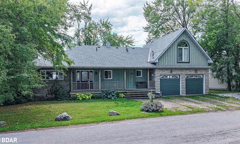 Bask in lakeside living on beautiful Lake Simcoe. This home sits on 60' frontage with an open concept kitchen/living/diniing area that flows to a large covered porch overlooking the water--perfect for that morning coffee + special dinners! The kitchen features granite counters, a breakfast bar and built in microwave + clear views of the Lake. Enjoy hardwood throughout, main floor laundry, and a spacious primary bedroom. 2 covered porches--front and back--expand your outdoor living. An attached double car garage with inside entry adds to everyday convenience. Very private yet close to a marina, minutes to shopping and on the school bus route. This home comes with contents-move in ready for easy year round or weekend living on the water!