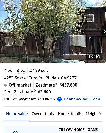 4283 Smoke Tree Rd, Phelan, CA 92371 is a single family home that contains 2,199 sq ft and was built in 1945. It contains 4 bedrooms and 2 bathrooms. This home last sold for $110,500 in November 2024.