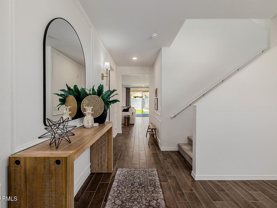Why wait for a new build? This immaculate 2022 home is better than new- Move-in ready with no dust, delays, or hidden upgrade costs! Seller is offering a buyer incentive toward a rate buy-down. The popular Lagoon floorplan features 4 beds, 2.5 baths, a downstairs flex room, upstairs loft, and 3-car tandem garage. Upgrades include wood-look tile, custom molding, soft water system, Ring doorbell + cameras, and upstairs laundry with sink plumbing. The gourmet kitchen boasts granite counters, 36'' gas cooktop, decorative hood, built-in oven/microwave, and huge walk-in pantry. Enjoy $35K+ in backyard upgrades: artificial turf, citrus trees, lighting, pergola with shade, and gas stub for BBQ. Truly turnkey and beautifully finished! Picture frame molding, modern sconces, lighting and a custom built-in drop zone. The soft water system and Ring doorbell with camera offer added comfort and convenience. The backyard oasis has been professionally designed with over $35K in landscaping and hardscaping, including artificial turf, lemon and orange trees, landscape lighting, a gas stub for your BBQ or future outdoor kitchen, and a fabulous pergola with shade coverperfect for entertaining! Upstairs, enjoy the convenience of an upstairs laundry room, complete with plumbing for a wash sink. The 3-car garage includes a storage rack system for maximum organization. Plus, enjoy sunup-to-sundown exterior lighting for added safety and ambiance.