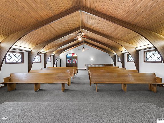This beautiful remodeled former church offers flexibility for office space, school, daycare, or community functions. Renovated in 2025, the property features new flooring, new kitchen, and improved mechanicals ready for immediate use. It provides excellent visibility and easy access. The open layout, high cathedral ceilings, and natural light, beautiful stain glass windows create a welcoming environment adaptable to variety of needs. Includes two restrooms, a kitchen area, and versatile rooms for class rooms, offices, collaborative workspaces, just minutes away from Lincoln. Small town charm with proximity to city amenities. Zone Commercial or turn it into your New Home.