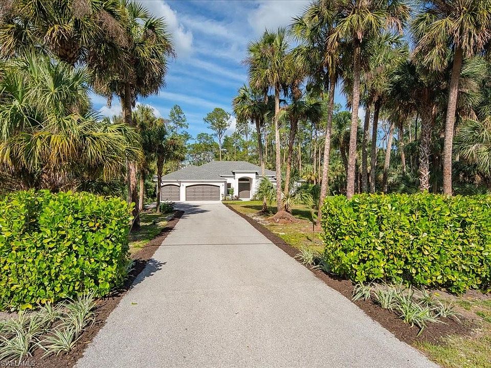 Priced to Sell! This new construction home in Golden Gate Estates is ready for its new and proud owner. Recently built in 2020, this is the definition of peaceful estate living near town but with a “country” feel. This private, luxury pool home has been superbly maintained and is move-in ready with 4 bedrooms and 3 bathrooms laid across a functional, split floor plan featuring volume & trey ceilings, porcelain tile floors & large office + 1 bonus room with a 3-car garage. All sited across a 2.73 acre lot! Come enjoy Naples outdoor living at its finest with your custom screened-in pool and covered lanai perfect for entertaining & relaxation. This property is 100% upland and comes with hurricane panel protection throughout. In addition, the home is equipped with a whole house reverse osmosis water system. Come discover the variety of trees including mango, lime, lemon, key lime & avocado. This one is truly…A must see!