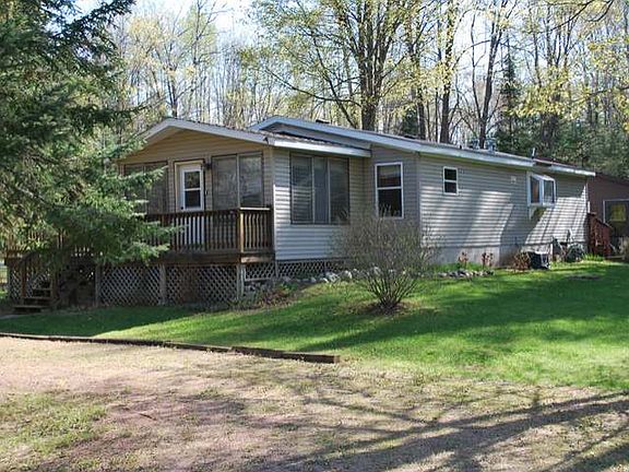 Near beautiful, 172 acre, full recreational, Trump Lake, the public boat landing and the Nicolet National Forest, makes this property the ideal Northern Wisconsin location to be used as your home or cabin/cottage. The 2 bedroom, 2 full bathroom home, has been nicely maintained, features a 12'x16' enclosed, 3 season room and a large wrap around deck. The 28'x36' detached 2 car garage has a heated bunkhouse, along with an attached 10'x12' lean to. There is plenty of space for family, friends and all of your recreational toys.