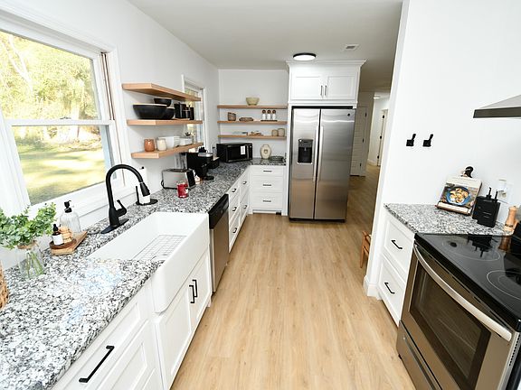 Beautifully Renovated Home on 2.77 Acres in South Bibb County! Nestled on 2.77 acres surrounded by beautiful hardwood trees, this stunning 3 bedroom, 2 bath home offers the perfect blend of modern updates and peaceful country living. Located in a quiet, established area off Hartley Bridge Road, this property is truly a hidden gem. Step inside to find brand-new LVP flooring throughout, fresh paint, new doors, and completely updated bathrooms with all new fixtures. The renovated kitchen is a showstopper—featuring soft-close cabinets, granite countertops, a farmhouse sink, pot drawers, open shelving, a stylish vent hood, touch screen toaster and stainless steel appliances (including refrigerator). Two kitchen windows overlook the spacious backyard, filling the room with natural light. The primary suite features a luxurious walk-in jetted tub and enclosed shower unit. New roof, new HVAC, new plumbing, new floor joists, new subflooring, and more! A new washer and dryer are also included, making this home truly move-in ready. With its peaceful surroundings, modern updates, and charm inside and out—this precious property is an absolute must-see!