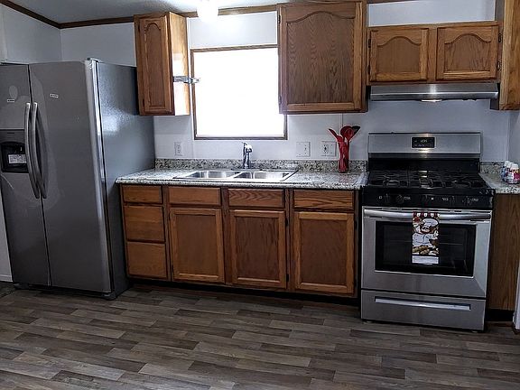 Cute home!! Completely repainted, all new flooring and move in ready. Home features lots of new lots items and upgrades. Home is a double wide permanently set on a block crawlspace Foundation. Roof Has new shingles with new underlayment, water shield and new ridge vent. Has a side privacy fence and a fenced in back yard. Shed is 10 X 12 with double doors, shelving, skylight and lean - to off of back. Nicely landscaped.