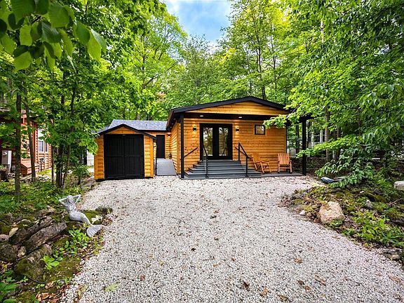 This trendy log style cabin with a lake view at Heritage Lake Resort offers all the amenities. This is a rare 2 bed 2 bath unit. REMODELED UNIT with NEW ADDITION as of 2024. The primary is extra-large with a king size bed & ensuite. Ensuite has a large steam shower & tub with on demand water heater. The cathedral ceilings in every room lives large. The kitchen offers commercial features with a large stainless steel sink, countertops, & a garbage disposal. It makes the perfect prep area for the master chef or even a great area to prepare fresh fish. New HVAC, roof/gutters, log-like siding, composite decking, shed & more! Perfect for the person who just wants to move in and enjoy. Come join this great community!