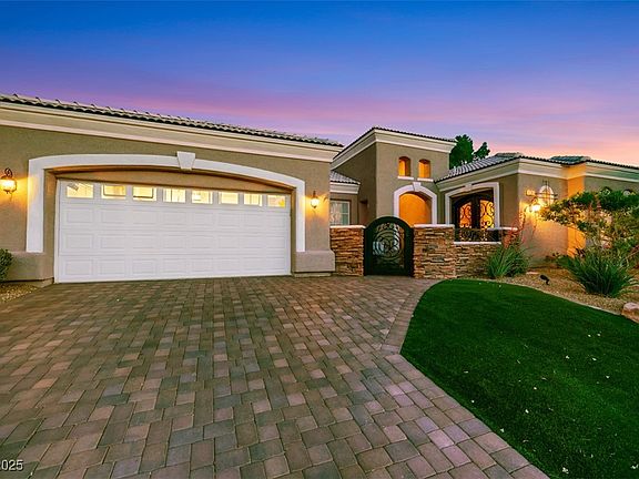 Amazing and incredible golf course property with wide open and beautiful views of the Las Vegas Strip and surrounding mountains. Highly upgraded 3 bedroom home - featuring a private casita - offers luxurious living on the golf course, nestled in the beautiful guard gated community of Siena Country Club. Minutes from the 215, casinos and shopping areas. Enter through the beautiful custom iron gate and serene courtyard to the expansive covered patio with high end BBQ, this home is designed for style and comfort. Inside the custom kitchen dazzles with stainless steel appliances, a wine refrigerator and beautifully upgraded rich cabinetry, showcasing exceptional storage features. Primary suite boasts a bay window overlooking the greens with mountain views. Extensive closet space and an incredible spa like custom bathroom! Additional highlights include crown molding, coffered ceilings, rolling shutters and very lush landscaping. A rare gem offering elegance and breathtaking views!
