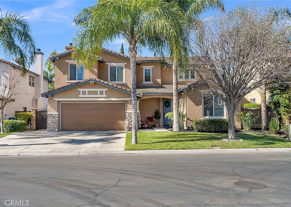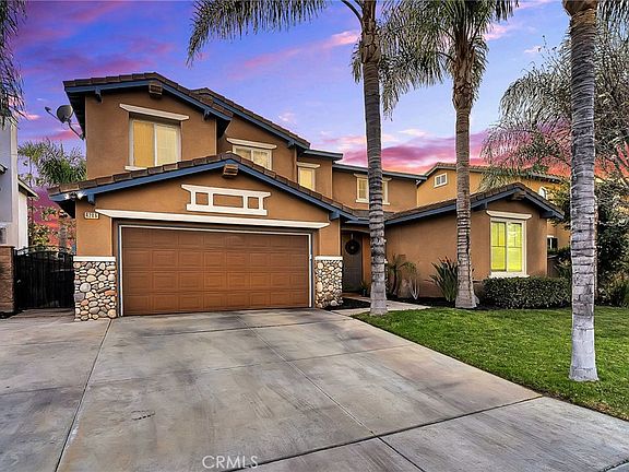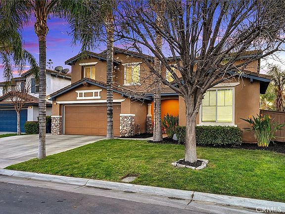 Beautiful Riverwalk Pool Home. Located in a highly desirable gated community, this upgraded home will check off all of your boxes. Upon arrival the lush landscaping and exterior appeal of this large home will welcome you in. There is a first-floor bedroom and full bathroom for multi-generational households. The tall ceilings with an abundance of natural light cascading through the upper windows creates a beautiful formal living room. The formal dining room can be closed off for intimate dinner parties. The updated kitchen features white cabinets and countertops, metal finish subway tile back splash along with newer Black Stainless-steel appliances including double wall ovens. The Island has blue cabinets and butcher block countertop adding to the designer feel of this Cook's Dream of a kitchen. The spacious family room is open to the kitchen and looks out to your private resort rear yard. Upstairs features 3 large additional bedrooms, a 3rd full bathroom and beautiful Primary Suite. The double door entry into the primary suite welcomes you into this private dream sanctuary that offers a view of the rear yard and pool. The primary suite bathroom features a separate soaking tub, shower, dual sink vanity, two closets and is beautifully upgraded with vinyl plank flooring and decorator touches and finishes. This home is equipped with Solar and a whole house fan that adds to its affordability along with being highly upgraded. The back yard is what dreams are made of, it is oversized featuring an Aluma Wood patio cover, lush landscaping and a Pool and Spa that Rivals those of a great resort. No detail has been overlooked including lighting, several seating areas to enjoy the outside and host the most amazing Pool parties. This private gated community offers a location that is convenient to Restaurants, shopping, schools, colleges and has easy freeway access for those commuting into Orange County and beyond. This home will be Sold Fast so make sure to schedule your Tour today.