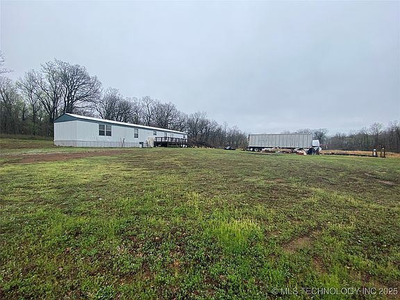 Secluded and private 19 +/- acres with a well-maintained 1999 mobile home with 4 bedrooms, 2 full baths, a small greenhouse that is ready for your garden, a semi-trailer for storage, and a weather creek located north of Chelsea, OK. The land is full of animals (deer, squirrels, and turkey. It is located only 13 miles west of Vinita and only 20 miles to Hwy 44. It is a very peaceful place to live in and enjoy nature. Come see it and make it yours today! Selling AS-IS.
