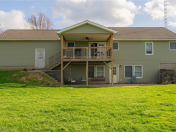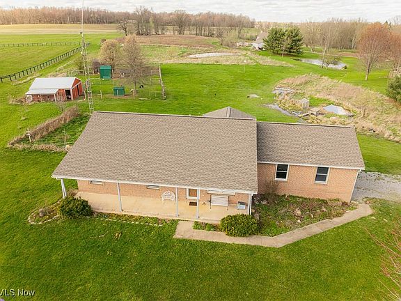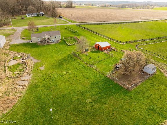 Welcome to this well-appointed ranch home on 4 scenic acres in Leetonia, located in the desirable Crestview Local School District—perfect for homesteaders or hobby farmers seeking a move-in-ready property with established infrastructure. This spacious 3-bedroom, 3-bath home offers over 2,600 sq ft of finished living space, including a primary suite with a private en suite bath. The main floor features a traditional layout with a comfortable living room that flows to the dining room, which leads out to a covered back deck—ideal for enjoying your morning coffee while taking in serene pastoral views. The living room is open to the dining area. On the main level, you will find two other bedrooms and full bath. The finished walk-out basement offers a large rec room, an additional full bathroom, and a dedicated laundry room. Outdoor highlights include a stocked pond, a 48x30 pole barn/garage with electric, and a 24x24 barn with four stalls (two 6x8 and two 12x8), electric, and an attached 4x8 chicken coop, a duck pond area and an additional shed/coop. The land is rich with established and producing plantings: 12 grapevines (4 varieties, 5 years old), 2 Granny Smith and 2 Macintosh apple trees (5 yrs), 2 pear trees (3 yrs), blackberries, blueberries, red and black raspberries, thimbleberries, and a perennial herb garden. Water irises and native wildflowers offer seasonal color throughout. The middle goat pasture is in year 3 of alfalfa. Before moving, the seller will label plantings for the next owner to enjoy this truly unique and abundant homestead.