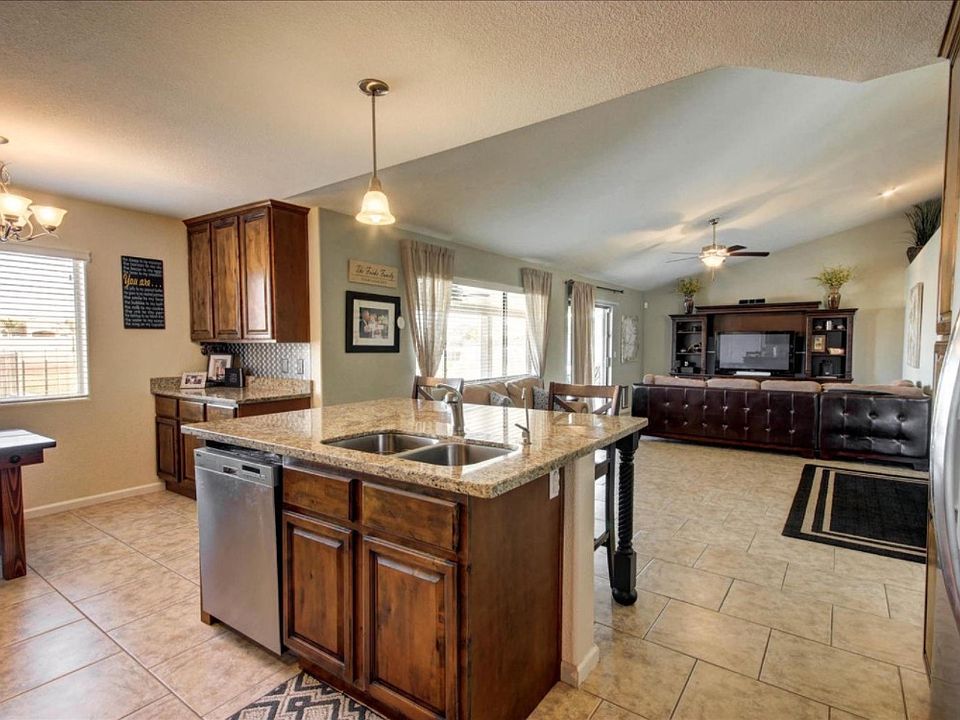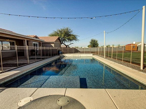 MUST SEE HOME in Gilbert! Sits on 1.2 acre lot. Kitchen features stainless steel apliances, granite countertops, kitchen island with breakfast bar and eat-in kitchen. Spacious living room has sliding glasss doors leading out to the backyard. Large bedrooms have pictures windows and ceiling fans. Large master suite with private exit to patio. Full size master bathroom features his and her sinks, soaking tub, shower, private toilet room and walk-in closet. Covered travertine tiled patio with ceiling fans and surround sound music and romantic lighting creates a wonderful atmosphere. Large grass backyard features a pebble-tec pool built 2014 surrounded by a child protected mesh fence. New 8x12 storage shed. New AC Unit installed summer 2014. Sealed 3 car garage with storage cabinets.
