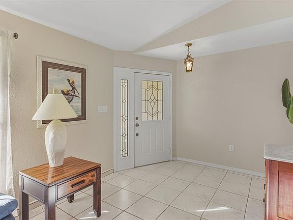 A perfect opportunity to own this delightful split layout, 2-bedroom, 2-bathroom, block home containing 1,330 square feet of living area. Plus, there is an additional 370 square feet in the air-conditioned enclosed entertainment porch (aka Florida Room) and versatile bonus room with closet - ideal for an office, crafting, exercise, or storage. All on an elevated oversized (.33 acre) corner lot with public water, sewer, and wood views. The site has a private well for lawn irrigation and garden enthusiasts. Need more storage or play space? This home features a 2-car garage with a tile floor and full front width sliding screen doors to enjoy all of your hobbies and fun activities. You’ll have peace of mind having a newer hurricane rated overhead garage door (2020), hurricane impact rated windows, whole house re-pipe (2020), brand-new hot water heater (2025), newer roof (2020), attic a/c ducts were replacement (2020), range (2024), refrigerator (2024), microwave (2025), air-condition system (2019) and well pump (2018). Seamless and easy to maintain tile floors throughout. No deed restrictions, so bring your boat or RV. Close to the Peach River and Spring Lake boat launches for exceptional fishing in the Gulf or enjoy a relaxing sail into our beautiful Florida sunsets. Ideal home for rear round or seasonal paradise seekers, and investors alike. (For additional peace of mind there was no flood damage from Hurricanes Ian, Helene or Milton. Former roof leak repaired and satisfactory mold test recently reported "not elevated" mold spores. (Note: The sale includes washer and dryer, and furniture in the living room, dining room, guest bedroom, and hutch in dinnette. All other furniture and exterior potted plants are excluded from sale. ) Room measurments are estimated. Click on the 2nd Virtual Link Tour for a 3D tour of home.