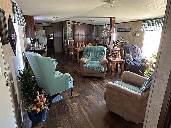 A comfortable 2 bedroom, 2 bath singlewide mobile home sits tucked back from the road for added privacy. It features a large, open living, dining, and kitchen area, full-size laundry, and a spacious deck to enjoy the quiet, rural surroundings. Handicap ramps have been installed to the front and rear doors.