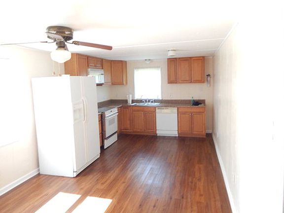 This home for rent has 3 bedrooms, 1 full bath, eat in kitchen and large living area. Washer, refrigerator, Stove, dishwasher and built in microwave. Clean and renovated home with fresh paint and flooring. No AC however window units on the back of the home are acceptable but not furnished. White house with Black front and rear porch. Driveway is natural.