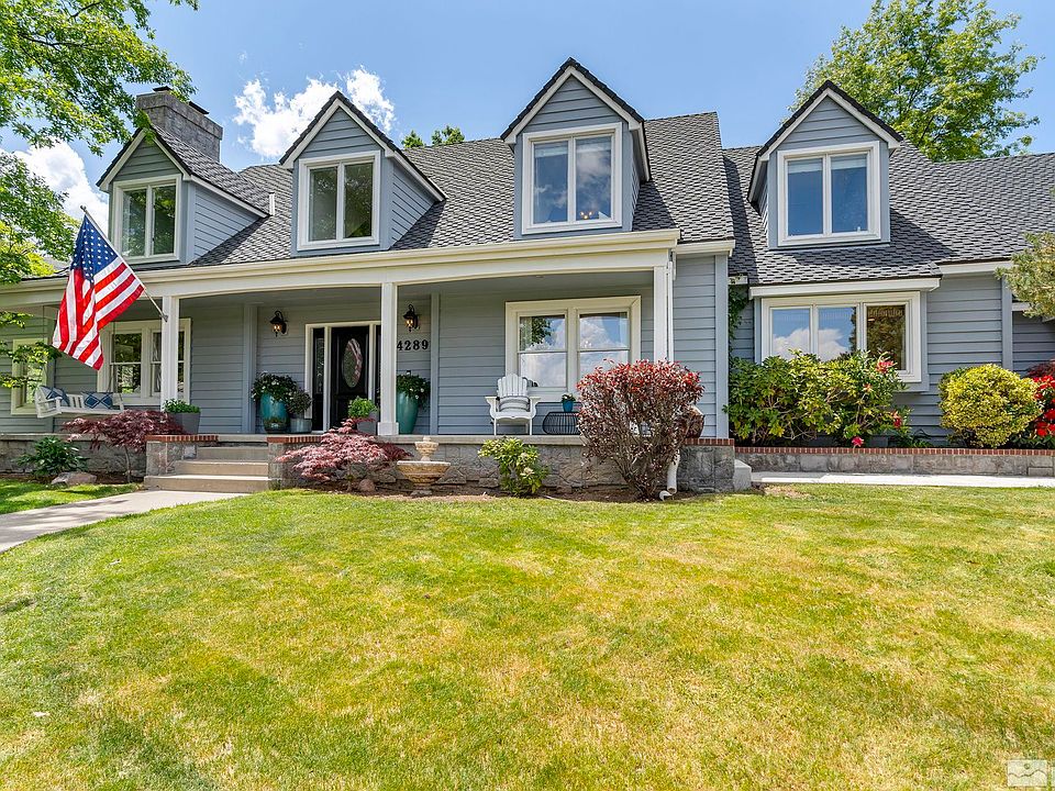 This stunning Cape Cod has possibly the best curb appeal in all of Caughlin Ranch. Perched on a serene .44 acre lot overlooking mature trees and lush greenery all around, this stately home is minutes to downtown/midtown, yet adjacent to the famed Steamboat and Caughlin trail systems for easy access to some of the areas best hiking and biking. The traditional floorplan has an expansive kitchen and family room for open concept living, yet maintains the classic architecture of a charming New England Cape., The main floor includes the spacious kitchen and family room, formal dining and living rooms, a half bath, a bright sunroom, and a dedicated office. The second floor has 4 bedrooms and bathrooms (three en-suite), plus a luxurious primary with sun room, a massive laundry toom, and open family room/play area. Every upstairs window has beautiful views of the surrounding landscape. Sitting on a private, lush parcel in highly sought after Caughlin Ranch, this home is wtihin 5 miles of the heart of Reno and is zoned for three of Reno's top public Schools.