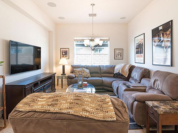 Welcome to 42897 Cusino Ct, a stunning desert retreat tucked at the end of a quiet cul-de-sac on an oversized 12,000 sq. ft. lot in a desirable 55+ community. This spacious home offers two living rooms and a versatile flex space that can serve as a bedroom, office, or hobby room. The kitchen is designed with both style and function in mind, featuring granite countertops, a central island with bar seating, and an open flow to the dining and living areas--ideal for entertaining. The primary suite is a private retreat with a walk-in closet, double vanity, soaking tub, and walk-in shower. Outdoor living is unmatched with two covered patios, custom misting systems, turf landscaping, and a resort-style custom pool with overflow spa, all framed by sweeping north and west-facing views that capture the desert sky and sunsets. A convenient laundry room with utility sink completes the home, which is offered fully furnished and move-in ready for your next desert chapter.