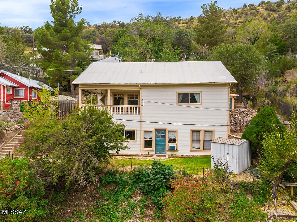 Historic Bisbee Home with Guest Quarters, Vineyard & Panoramic ViewsNestled in the heart of Old Bisbee, this charming century-old home blends historic character with modern comfort. The main level offers three bedrooms and two full baths with elegant pedestal sinks, a kitchen with granite countertops, a bright Arizona room, and fresh interior paint throughout. The lower level, with its own private entrance, features a complete one-bedroom guest suite with a full kitchen, washer and dryer, and full bath--perfect for extended family, guests, or rental opportunities. Step outside to discover a hillside vineyard where you can sip wine while taking in sweeping mountain views. A greenhouse, and storage shed add to the appeal, along with flagstone walkways (plus additional stone for future design). Expansive patios, a spacious balcony, and lush outdoor living spaces make it easy to relax or entertain while enjoying Bisbee's famously mild climate. Additional highlights include: