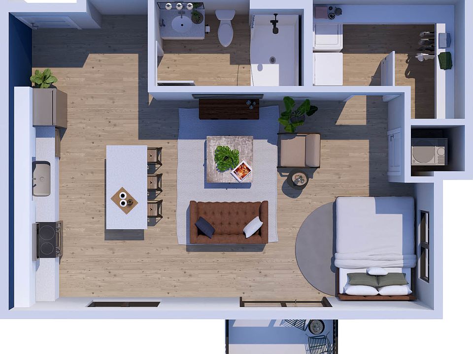Bright, open, and invitingThe Clearwater is the perfect studio for anyone seeking a modern apartment with plenty of natural light. Inspired by the purity and openness of Minnesota's lakes, this floor plan creates a welcoming space with room to relax and recharge. Efficiently designed with smart storage solutions, The Clearwater is ideal for those who want the convenience of a stylish home without sacrificing comfort.