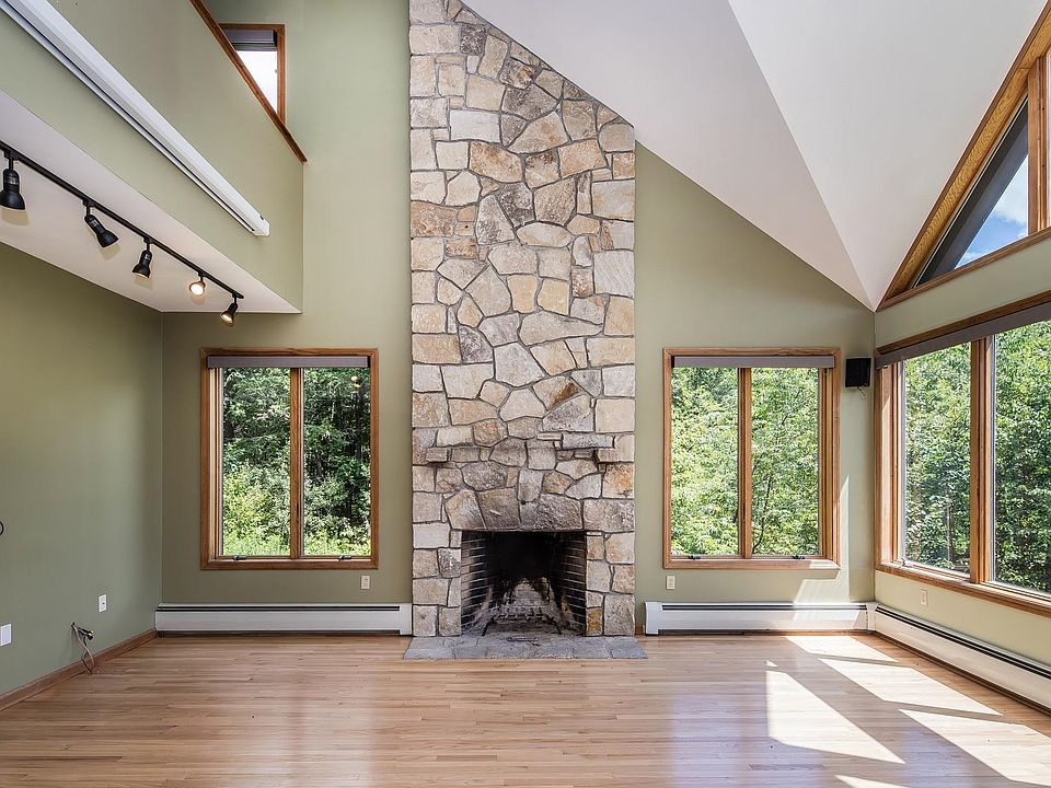 YOU CAN SEE THE SKIERS COMING DOWN THE HILL. EXCEPTIONAL VIEWS of Pico Mountain and 21 acres of privacy set the stage for this exceptional Mendon retreat. Located at the end of a quiet road and bordered by protected city forest, this spacious home is perfectly situated between Killington and Pico ski areas—offering the ideal balance of seclusion and year-round adventure. With over 3,800 sq ft on the main floors, the home features a dramatic great room with cathedral ceilings, a striking stone fireplace, and walls of windows framing the slopes of Pico. The open floor plan flows into the dining area and a stylish kitchen with granite counters and updated stainless steel appliances—perfect for entertaining. The first-floor primary suite offers a peaceful escape, while the home office and laundry room add convenience. Upstairs includes three additional bedrooms and a generous study loft. The finished lower level adds flexibility with a workout room and rec room. A screened porch and sunny deck expand your living space into the great outdoors. Recent upgrades include a new boiler, Aero therm hot water tank, radon mitigation system, and water softener. Located in a desirable town with a top-rated elementary school and high school choice, this home is ideal for full-time living or a luxurious Vermont getaway.