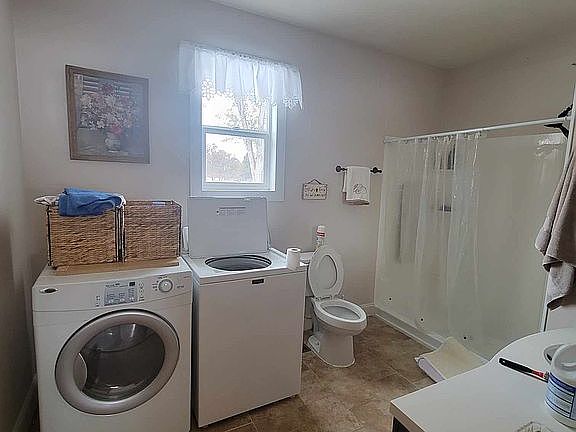 2 bedroom 2 full bathroom home, fully finished basement with living room, full bathroom, and bedroom downstairs. Large living room dining area upstairs. Full bath with washer and dryer upstairs.