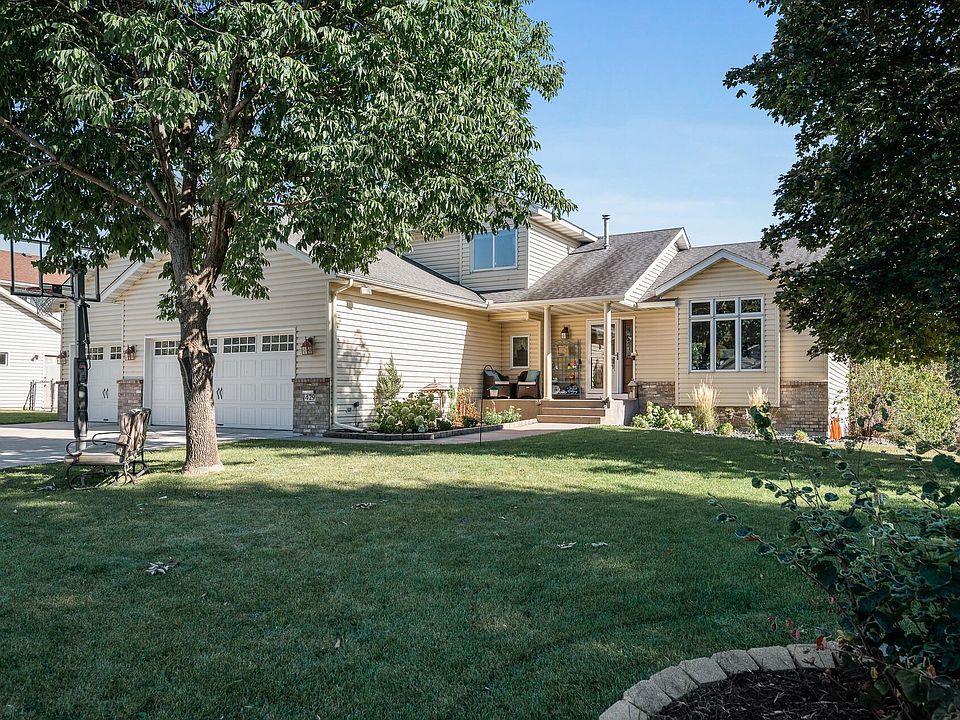 Welcome to this stunning modified two-story home with a maintenance free exterior and a walkout basement, located on a generous-sized lot with mature landscaping and kid play area. There is also a three care garage, storage shed, large deck, and garden area. This beautiful home boasts 4 bedrooms and 4 bathrooms, with an open floor plan and vaulted ceilings that create a spacious and inviting atmosphere. There are 3 bedrooms up and the master suite features a walk-in closet and a bright en-suite bathroom. The lower level exspands the living space with an oversized amusement room and private 4th bedroom and bathroom. Enjoy the convenience of a welcoming front porch. Don't miss out on the opportunity to make this house your forever home!