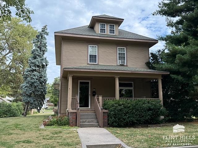 Discover the charm and character of this 2 1/2 story, 4 bedroom, 1 1/2 bath home located close to downtown. Step inside the front door and you are greeted by the open staircase, gorgeous beveled windows, beautiful wood pillars, hardwood floors and entry coat closet. The living room has pocket doors leading into the family room with French doors leading from the family room into the dining room. The kitchen has several updates including countertops, tile backsplash and flooring plus the appliances are included. There is a convenient main floor bedroom with access to the 1/2 bath with plenty of built-ins. The upstairs has 3 additional bedrooms and a cozy sunroom. The walk up attic is floored which has potential for additional living space. You can relax outside on the front porch on your porch swing or enjoy a cup of coffee on the back patio. This home has updated Anderson windows and a single garage. Schedule your showing today!