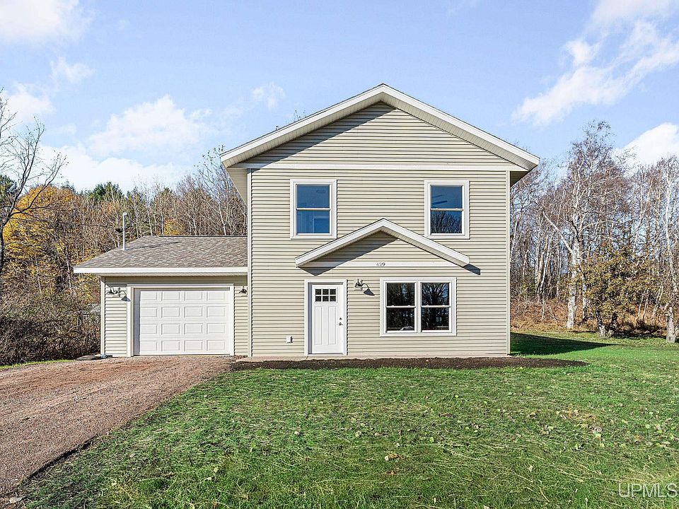 Welcome home to modern comfort and living in this NEWLY built 3-bedroom, 1.5-bath home offering over 1,200 square feet of thoughtful design and quality finishes. Nestled on nearly half-acre lot at the end of a quiet street, this property provides privacy, space, and convenient access to the best of Ishpeming’s outdoor scene. Step inside to an inviting open-concept main level featuring a light-filled living room and stylish kitchen—perfect for everyday living and entertaining. The main floor boasts in-floor heat, a convenient half bath, a generous storage closet under the stairs, and an easily accessible utility closet. Upstairs, you’ll find all three bedrooms, a full bathroom, and second-floor laundry for ultimate convenience. Plush brand-new carpet flows up the staircase and throughout the entire upper level, bringing warmth and comfort to the primary and guest bedrooms. A single car garage provides protected parking and extra storage for your gear and toys. The attic of the garage provides extra storage as well. Outside, enjoy a spacious back yard and side yard with room to play, garden, relax, or expand outdoor living spaces. You're minutes from the Iron Ore Heritage Trail, next to RAMBA trails, and surrounded by incredible biking, hiking, and winter trails—truly a year-round playground right out your front door. This brand-new home blends modern efficiency with a prime location close to schools, parks, and local amenities. All that’s left to do is move in and enjoy the UP lifestyle! This home is built locally with the Marquette County Land Bank. An application is required for income verification with offer.