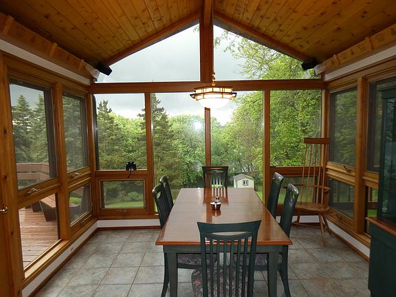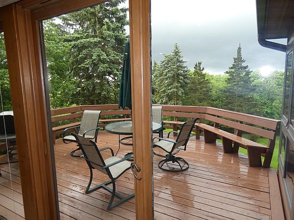 OPEN TO PUBLIC SAT 2:30-4PM GREAT NEW PRICE!MUST SELL! Colorado inspired home overlooking Trout Valley. Beautiful old oak trees surround the frt entrance. Home has walkout basmt with 5 bdm and 5 full baths. First floor bedroom with priv bath and priv deck. Bdm 2 on first floor currently being used as an office. 2 story vaulted foyer. Kitchen with bar stools for entertaining and desk area. Drop dead gorgeous views from the Flr to ceiling eating area/Dining room. Fam room with wood burning fireplace and lots of space. 2nd floor offers library with built ins that leads to a lofted kids playroom. Master bedrm has its own little sitting room when entering then to a bedrm area that overlooks yard and nature. Sep shower and tub in mstr bath with dual sinks. Fin wlkout bsemt has wet bar for entertaining double sided fireplace and another Fam room. 5th bdrm with full bath. Garage is heated. Lg storage shed with concrete floor for all your garden tools. Can close anytime. Real nice neighborhood