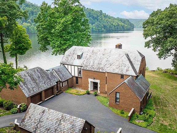 Prestigious 429 Lakeview Manor Drive, an address that stands alone. 0.83+/- Acres with approximately 225' lake frontage which boasts one of the most majestic views of Cheat Lake. Brick and Tudor style, true slate roof, copper gutters and downspouts with over 4,232 sf +/- of finished space. 13 rooms total, 4 bedrooms, 3 1/2 bath, large kitchen, screened porch, large private dining room, living room in a private setting with views of the water. Solid oak 6 panel doors throughout with a beautiful solid wood den/gathering room and a wooden staircase to the second level. There is a partially finished lower level with theatre room, bar and two offices. Attached 2 car garage with a 3rd garage for boat storage or any outdoor needs. Half circular driveway adds to the private setting of this Lakeview Manor gem.