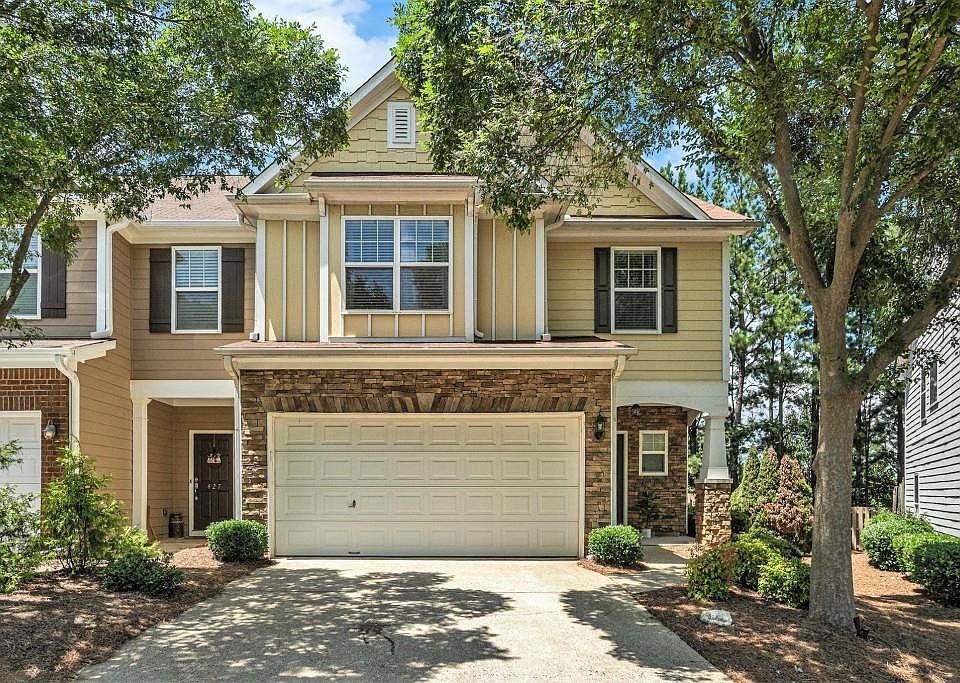 Good news! Our seller is willing to do a 2/1 Buydown! That could benefit the buyer in the amount of approximately $8,000! Contact us today to see this beautiful townhome in person! Welcome Home to this Light and Bright 3 Bedroom, 2.5 Bath End Unit Townhome in the Sought-After Mountain Brook Community Complete with Swim, Trails, and a Private Lake! The Open Concept Main Level Floorplan features a Two-Story Living Room with a Cozy Gas Fireplace, a Spacious Dining Area with Crown Molding and Wainscoting, and a Generous Kitchen with Stainless Steel Appliances, a Breakfast Bar, Wooden Shaker Cabinets, and a Walk In Pantry. A Convenient Half Bath on the Main adds function and flexibility. Upstairs, the Oversized Owner's Suite includes Trey Ceilings, a Luxurious Bath with a Soaking Tub, Separate Shower, Double Vanity Sinks, and an Expansive Walk-In Closet. Two Additional Bedrooms and a Full Bathroom offer plenty of space for family or guests. Fresh Interior Paint and Brand New Carpet make this one Truly Move-In Ready! Step outside to your Walk-Out Patio and Grassy Area Perfect for Grilling Out, Pets or a Private Garden. Enjoy Top-Tier Amenities like a Swimming Pool, Fishing Dock, Playground, and Miles of Walking & Hiking Trails. Tucked away in a Quiet Spot just off HWY 92 with Easy Access to 575 & 400, and just minutes from Downtown Roswell, Downtown Woodstock, Marietta, Shopping, Restaurants, and Entertainment This is the One You've Been Waiting For!