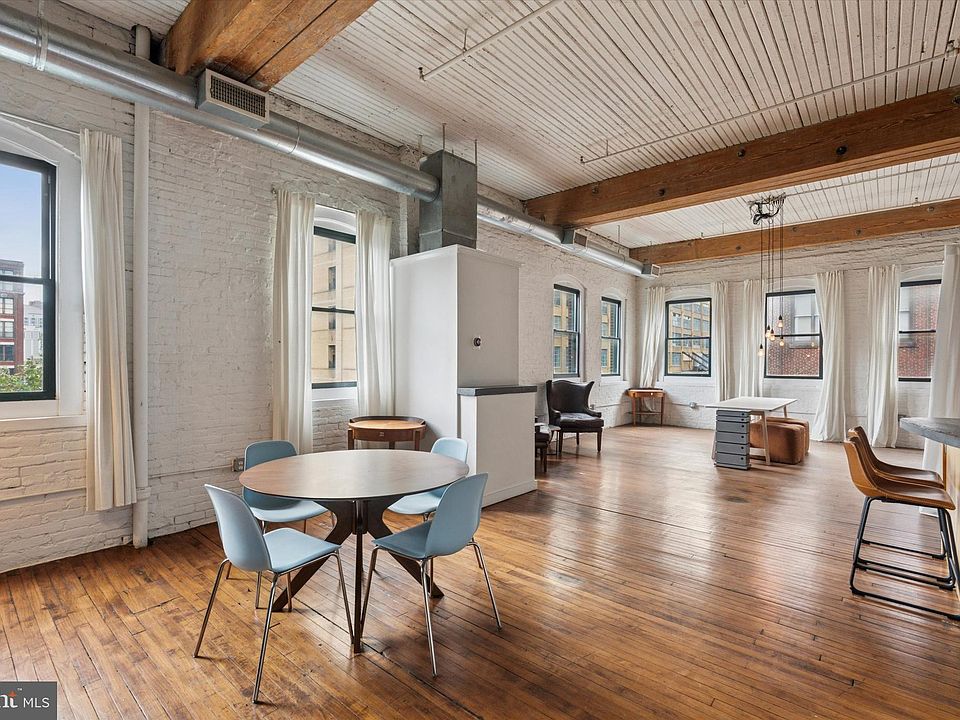 Welcome to this stunning FULLY FURNISHED loft-style condo located in the highly sought-after Rebman Building, situated in the vibrant CALLOWHILL/LOFT DISTRICT neighborhood. This space will certainly check all your loft checkmark boxes with this unique space offering the perfect blend of modern living with the touches of industrial charm. This loft features exposed painted brick walls, exposed ductwork, original warehouse flooring, exposed wooden beams, soaring 18'+ ceilings, oversized industrial windows spanning the length of two full walls, guaranteeing natural light throughout the day. The open concept floor plan is ALREAD FULLY FURNISHED and perfect for entertaining, and even allowing for some re-arrangement to give you the freedom to create YOUR ideal living space. The stylish kitchen features soapstone countertops, a stainless steel refrigerator, dishwasher, and includes an island with gas stove/range & with bar top seating that adds to the ample counter space, and oversized cabinets for storage. The condo also features a spacious full bathroom with a bathtub/shower combo, and for added convenience, there is a washer/dryer in the bathroom. The central location of this building is amazing for commuters whether walking/biking, it's close proximity to to public transportation, and access to several major highways. Again, this central location is amazing for it's close proximity to many Philly landmarks such as City Hall, museums, the Reading Terminal Market, and Center City. Here you are steps away from fantastic food and drink spots such as Love City Brewing, Cafe Lift, Prohibition Taproom, and Underground Arts. Also notable--If you are looking for some fresh air and outdoor time you are STEPS from the RAIL PARK to enjoy city green space and some scenic trails! This special unit is available now! Schedule your tour today!