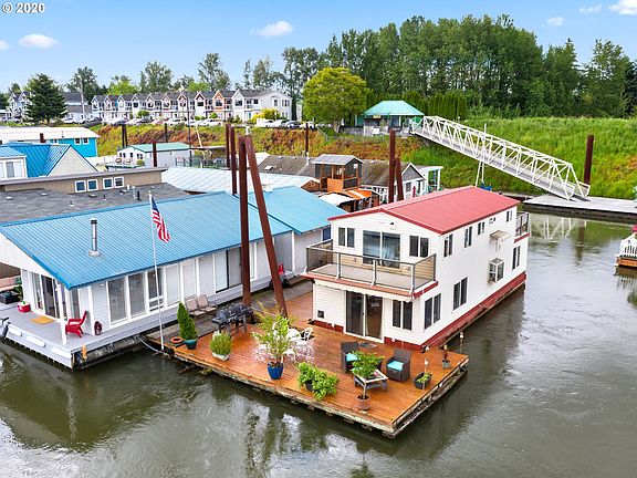 Views, Views! Beautiful River Front Floating Home that Features a Large Outdoor Deck with 2 Boat Parking Spaces. Perfect for Summer BBq's and River Fun. A Wonderful Open Concept Kitchen and Great Room with Views from All Directions. The Master Bedroom Features Its own Deck Perfect for those Relaxing Moments. The Office/Bonus Room has Wonderful Deck Perfect for Working From Home. This Home is Move In Ready, A Must See!