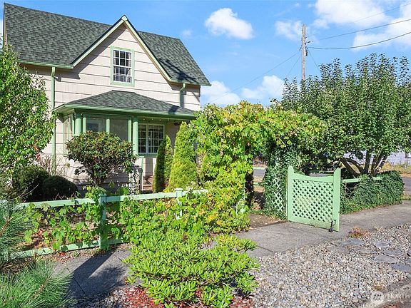 Step into this timeless charmer, a beautifully maintained early 1900s corner lot home. The fully fenced yard is filled with mature shrubs, fruit trees, berries, and flowers, creating a private outdoor retreat. A 24x24 detached garage with RV height doors offers ample parking and storage. Inside, wainscoting, crown moulding, and archways highlight the character of the era. The living room features a cozy gas fireplace that flows into the central dining area and spacious kitchen with newer appliances. The main floor provides a bedroom and full bath, while two additional bedrooms upstairs offer flexible living space. Thoughtfully designed to blend modern comfort with original craftsmanship, this home is ready to welcome its next chapter.