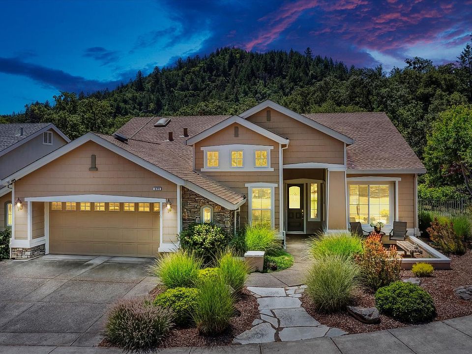 Immaculate Redwood Model Home is situated on one of the most desirable locations in Del Webb's Clover Spring Community in the heart of Wine Country. The 3-bedroom, 2-bath home backs to open space with plenty of walking and hiking trails. The open-concept layout features 10-ft ceilings, newer carpet, spacious kitchen with granite countertops, newer high-end stainless steel appliances, built in double ovens, gas cooktop, Large kitchen island, separate dining/breakfast area, pantry and plenty of room for entertaining. The home offers larger bedrooms and a primary suite that includes a walk-in shower, soaking tub, dual sinks, and his-and-hers walk-in closets. The home has been immaculately kept with quality updates which include newer roof replacement, a newer 9 panel owned solar system, newer exterior paint and whole house fan, fire suppression system and oversized 2 car garage. Enjoy this serene, professionally landscaped covered back patio area while listening to the tranquil sounds of your own built-in waterfall. Relax and enjoy the open space views within your own garden of roses, grapes and apple tree. Enjoy all the amenities of the pool, spa, tennis, and bocce ball courts. This lovingly maintained home offers serene living with all the modern comforts.