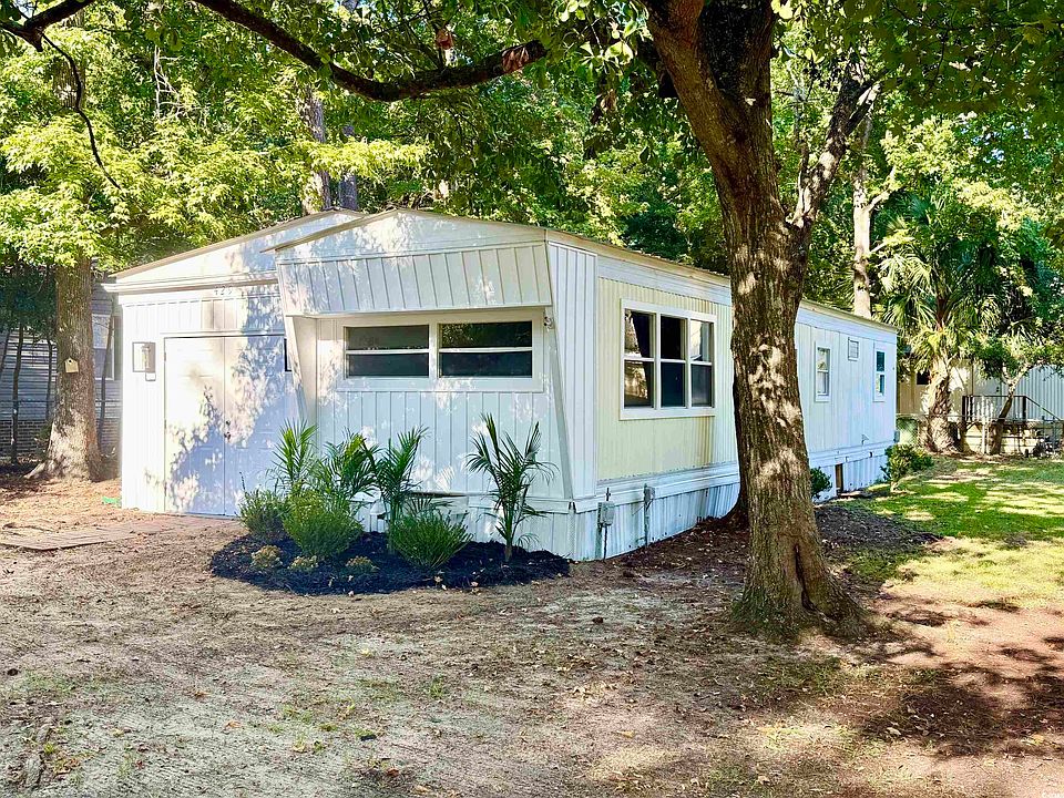 Discover affordable coastal living in this inviting 2 bedroom, 1 bath manufactured home. Thoughtfully updated with fresh finishes and modern touches, it’s the perfect place to relax, unwind, and enjoy life near the beach. Inside you’ll find brand new flooring throughout and stylish shiplap ceilings that add character and warmth. The bright, open living room flows into a refreshed kitchen featuring crisp white cabinetry with a blend of open and closed shelving, perfect for both storage and display. Convenience is built right in with a washer and dryer included, and there’s plenty of room for your vehicles with four car parking plus dedicated golf cart space. Out back, a concrete slab is already in place, ready for your future shed or extra storage. Located close to shopping and dining, and close enough to enjoy the sand and surf anytime, this home offers the ideal combination of comfort, convenience, and affordability. Whether you’re looking for a full time residence or a weekend retreat, this property checks all the boxes.
