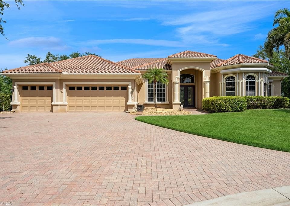 Welcome to 429 Terracina Court, a beautifully designed estate home nestled on a quiet cul-de-sac in the prestigious Vineyards community of Naples, Florida. This spacious residence offers the perfect blend of elegance, comfort, and privacy—ideal for both seasonal enjoyment and year-round living. Boasting approximately 4,000 square feet under air, this 4-bedroom plus den, 4.5-bath home features soaring ceilings, an open floor plan, and a seamless flow between indoor and outdoor spaces. At the heart of the home, the gourmet kitchen offers ample counter space, high-end appliances, and custom cabinetry—perfect for the chef in the family. Step outside to your private resort-style pool and spa, surrounded by lush landscaping and unobstructed long lake views that capture the essence of Southwest Florida living. The expansive lanai is ideal for entertaining or enjoying peaceful sunsets in complete serenity. Located in the sought-after Terracina enclave of The Vineyards, this home offers immediate proximity to the renovated Vineyards Country Club, which includes 36 holes of championship golf, tennis courts, fitness center, full spa, and an award-winning clubhouse. Additional features include a three-car garage, a generous primary suite with a spa-like bath, a formal dining area, and a large office or bonus room. Homes of this size and setting in the Vineyards are rare—don’t miss your opportunity to own this slice of paradise.