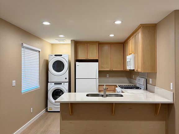 Freshly updated studio featuring brand-new floors, fresh paint, and new blinds throughout. Includes in-unit laundry with washer and dryer, plus new fridge, stove, and microwave. Assigned parking included. Fresh, stylish, and move-in ready.