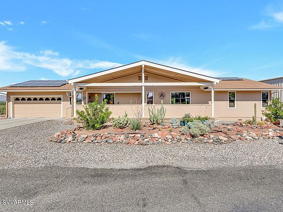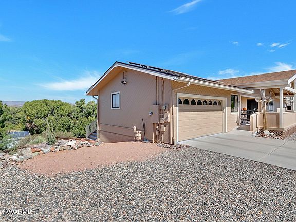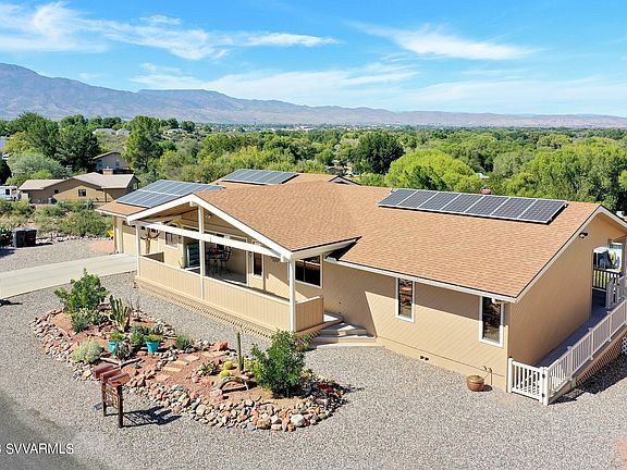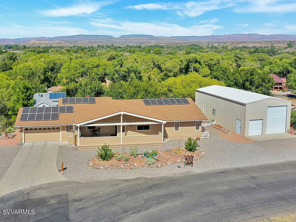Character, quality and 180 Degree Views!! Fully remodeled with new kitchen and baths, maple cabinets, farm sink, quartz counters, SS appliances and more!! In addition, new tile floors and carpet, some newer windows, new sliding doors, and tongue and groove ceilings. 2 bedrooms + office, 2 baths, 2 car garage, and large front covered patio. Expansive rear deck with unblockable views to Sedona, Mingus Mtn, Verde Greenbelt below and beyond. Also, don't forget about the huge 26'x 42' detached R.V. garage and shop (insulated/heated and cooled) Spacious double corner lot, and walking distance to Verde River greenspace and trail. Come and see....