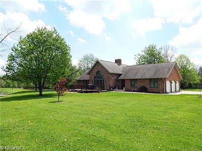 Don't miss this opportunity to own your own private retreat! This inviting brick home sits on 25.8 scenic acres complete with 2 stocked ponds, woods plus tillable acreage. You'll appreciate a cottage style outbuilding along with an additional barn. Fabulous 2 story great room includes a brick wall and woodburning stove and custom hardwood floors. French doors lead out to a relaxing deck. A spiral staircase takes you up to an upper loft/bedroom 3. A cozy eat in kitchen offers a brick woodburning fireplace. Inviting sun room with attached craft room. A spacious master suite includes a private master bath. The finished basement has a rec/game area and a large storage area. This home features a 3 car garage with hot and cold water and a 220 line. Enjoy energy efficient geothermal heat.