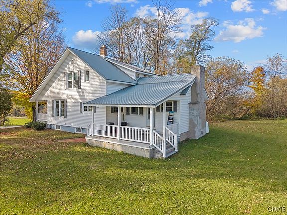 On the market for the first time in over 60 years and just 4.5 miles from the Village of Cazenovia, this well-loved country property has been in the same family — and it shows in the care and pride throughout. Set on an acre of land with a lovely mix of open space and mature shade trees, the setting is peaceful, picturesque, and full of potential. Inside, you'll find timeless charm (and warmth!) – gorgeous hardwood floors on the first floor, a gas fireplace in the family room and a woodburning stove (can be converted to a pellet stove) in the formal living room. The spacious eat-in kitchen is perfect for the cook/baker in the family - there is an additional built-in dual oven along with the stove and range. The main floor bedroom offers flexibility - easily a home office or guest area, while three additional bedrooms and a full bath upstairs makes this home the perfect retreat, with space for everyone and a layout that just feels easy to live in. Recent updates include a new furnace, metal roof and many new main-floor windows — all that’s needed are your own thoughtful updates – the home’s warmth, character, and solid bones create an ideal canvas to make it your own. Outside, enjoy relaxing on the covered front porch (with farmland all around), tending to a garden, or exploring the additional small parcel across the street, where a garage once stood. There's also an outbuilding that previously housed a horse back in the day — now perfect for storage, hobbies, or potential livestock use. Set in a truly wonderful location, this home offers the quiet beauty of country living with a strong sense of history, charm, and possibility. Many memories were formed here and now awaits new ones! Don't miss this rare opportunity to call this special piece of the countryside, home.