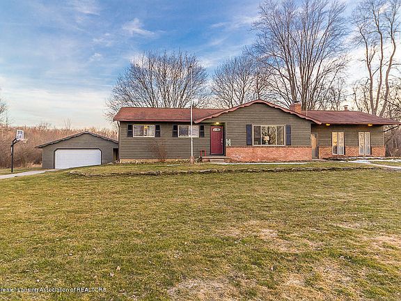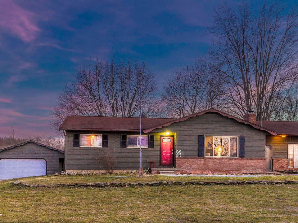 This unique ranch style home features 3 bedrooms, 1 and a half baths with an option for a 4th bedroom in an excellent bonus room that is currently being used as a master suite! Country feel but on a paved road, this home is a spacious 1,743 square feet on almost half an acre. This living room features many updates including fresh paint, wood floors, updated brick wood burning fireplace and more. The bonus family room or master suite (whatever you choose) is fully lined with cedar walls, aged hardwood floors from a VFW dance floor. On the lower level, the basement features an area for lots of dry storage and a kids playroom. Dual driveway access features two full concrete drives that lead to the two car detached garage with a covered patio. Environmental health inspection report is on file for water.