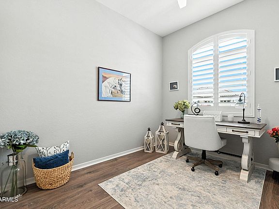Why wait for a new build when you can own this stunning, upgraded Fulton Cavalcade floor plan today? All the details have already been taken care of from plantation shutters and upgraded cabinets with granite countertops to a fully equipped laundry room with sink and cabinets. The garage impresses with an epoxy floor and convenient pulley-mounted hanging racks. Step outside to a charming backyard featuring a sleek sitting area under a custom pergola and a cozy fire pit, ideal for morning coffee or evening entertaining. Inside, you'll also enjoy peace of mind with an air scrubber purifier in the attic, creating a healthier indoor environment. This home truly shows like a model and is move-in ready just bring your toothbrush! As a resident, you'll enjoy all that Cooley Station has to offer, including a sparkling community pool, tot lot, basketball courts, walking trails, and more.
