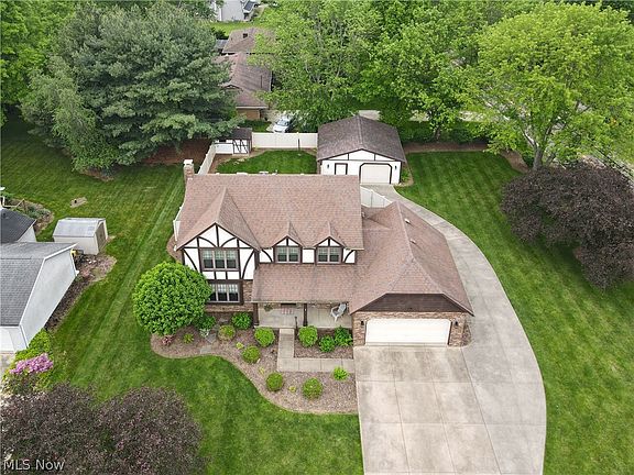 Welcome home to 4292 Greenwood Drive located in the city of Green. This gorgeous 3 bedroom, 2.5 bathroom Tudor style home includes an attached 2 car garage plus a detached 23 x 23 heated garage, a fenced in back yard, a large rear deck, a cozy front porch and pristine landscaping to top off the exterior of the home. The main floor inside is very spacious featuring new luxury vinyl plank flooring throughout the kitchen, dining area, and hallway. The sizeable living room boasts tons on natural light and a wood burning brick fireplace. The eat in kitchen area has an abundance of cabinet space including a pantry and hard surface counter tops, stainless steel appliances, and a sliding glass door leading to the back yard. The formal dining area presents beautiful crown molding and chair rail woodwork prefect for family gatherings. Multiple closets, a half bath off the garage, and laundry room top off the first floor. Upstairs you will find all three bedrooms, and 2 full updated baths. The master bedroom includes an enormous en suite master bath and walk in closet. The lower level is finished featuring a dry bar, a comfy entertainment space, and a hobby area. This one truly has a ton to offer so schedule your showing today and check it out for yourself.