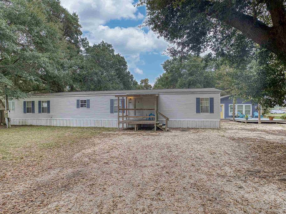Welcome to this spacious 3-bedroom, 2-bathroom mobile home, offering over 1,200 square feet of comfortable living on a generous .33-acre lot. This property includes a charming, 600-square-foot guest cottage, completely remodeled in 2017, which provides a fantastic opportunity for rental income or a private mother-in-law suite. The cottage is thoughtfully designed with 1 bedroom, 1 bathroom, a full kitchen featuring quartz countertops and a large island, concrete floors, washer/dryer hookups, and its own split unit A/C. Relax on the expansive front deck, perfect for enjoying the outdoors. The guest cottage is fully independent, equipped with a separate electric pole, its own septic system, and shared water access with the main home. Every upgrade was professionally permitted, ensuring peace of mind for both homeowners and investors alike. This property’s layout and amenities make it ideal for multi-generational living or as a smart investment opportunity. Conveniently located just minutes from shopping and dining, it’s also only 27 minutes to Downtown Pensacola and 37 minutes to Pensacola Beach. Don’t miss out—schedule your private showing today!