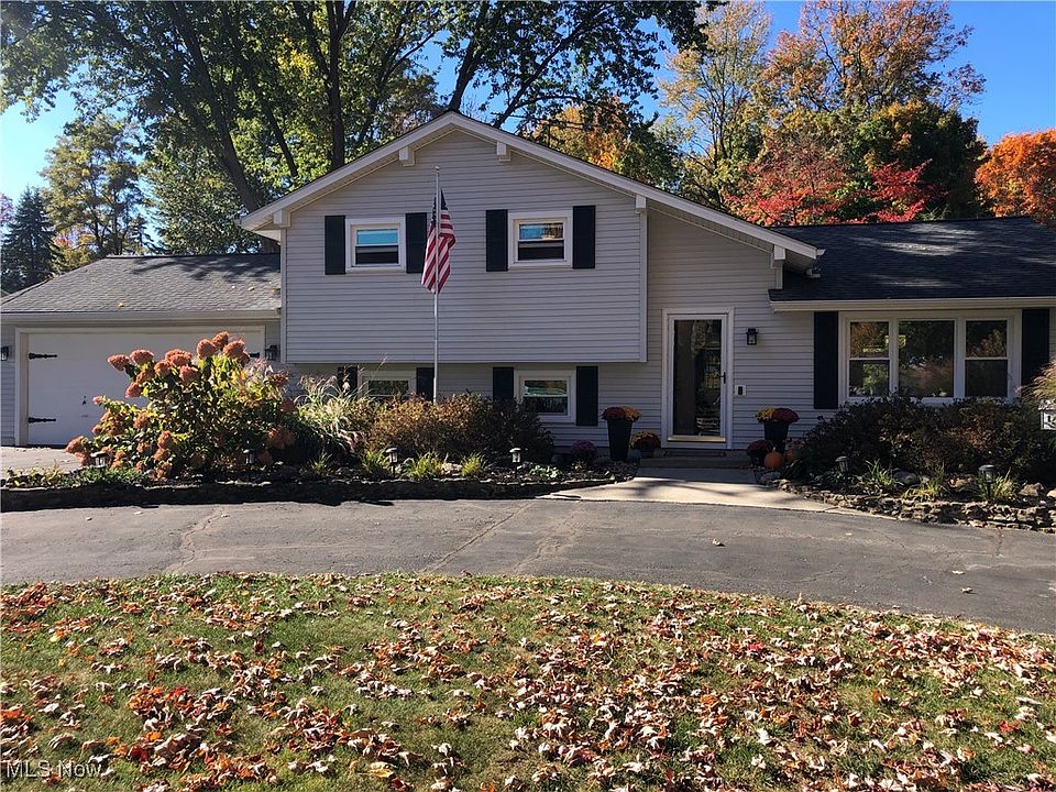 ** ( there is a sign that the road is closed - go around that to this address ) ** Fabulous split level home with oversized attached garage ** open floor plan ** every room; every surface has been touched and improved in the property ** flooring / paint / carpeting / kitchen - solid surface counters* newer cabinets* backsplash* appliances* center isle* lighting* light and white and pleasing / 2 full baths and they have been totally remodeled - cabinets* flooring* lighting* fixtures / deck / landscaping / light fixtures - check it out .. truly a pleasure to show ** previous owners stated that the windows were newer and the roof was replaced ** October 2024 - a new water heater ** large private lot with shed and firepit and a nice size deck off the dining room ** circular front driveway to accommodate all your entertaining parking needs ** great location in Avon - close to the shopping and highway access ** pride of ownership shines throughout !