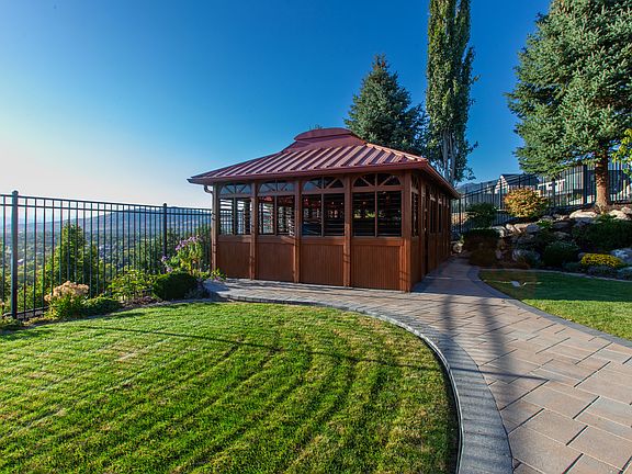 Covered patiosPaving stone pathwaysSecure wrought iron fenceStained-glass accentsHewn stone stepsSteel-roofed mahogany gazeboRemodeled kitchen