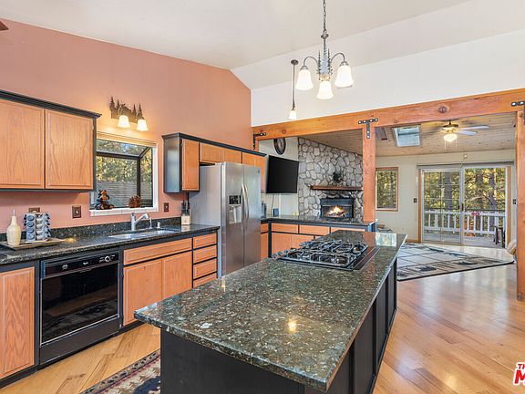 Perfect Mountain Cabin in Moonridge A Blend of Luxury and Comfort Nestled in the highly sought-after Moonridge area of Big Bear Lake, this stunning three-bedroom, 2 bath cabin offers the perfect retreat for those seeking both adventure and relaxation. Conveniently located near ski resorts and hiking trails, this home is ideal for outdoor enthusiasts while offering the luxury and comfort of a mountain escape. Boasting over 1,440 square feet, the inviting open floor plan is filled with natural light, thanks to vaulted cathedral ceilings and skylights. The bright hardwood floors add warmth and energy, perfectly complementing the cozy ambiance of the wood-burning fireplace. The heart of this home is the open chef's kitchen, complete with granite countertops and modern appliances is ideal for entertaining and gathering with family and friends. Step outside to one of the multiple decks, where you can soak in the fresh mountain air, relax in the hot tub, or enjoy the tranquil surroundings in the fenced rear yard. This Moonridge gem combines luxurious touches with the charm of mountain living, creating an ideal retreat for those who value both style and comfort.