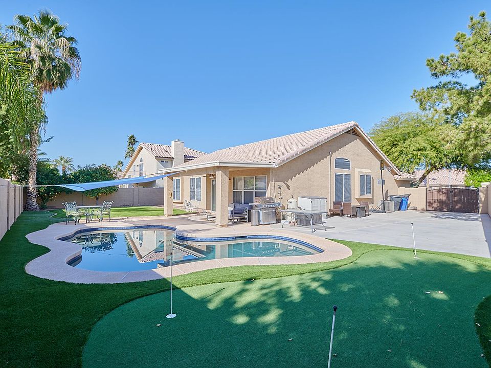 This home boast with pride of ownership in Superstition Meadows and sits on a large corner lot. This beautiful 3 bedroom, 2 bath property with Den has been maintained and ready for you to call home. Light,open and airy floorplan with new carpet and tile in the right places. Openkitchen features Granite counter tops, tile backsplash, versatile island and stainless steel appliances. Both bathrooms have been completely remodeled. Master Bedroom boasts a walk-in closet,separate shower/tub and double sinks. Large RV gate, gated on both sides. Step outside into the huge backyard & enjoy the gatedsparkling pool. Call for viewing today to make it your own!